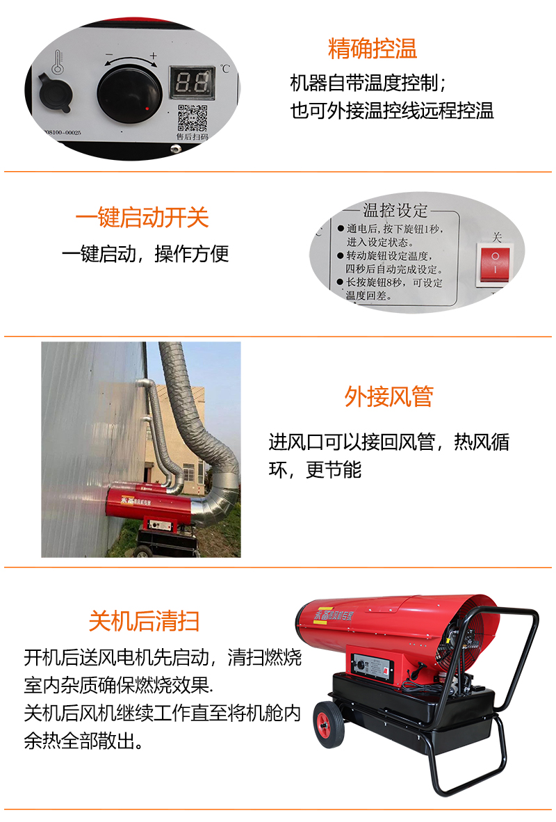 1.ST80 ST100采用柴油或煤油為燃料,機(jī)器后部的強(qiáng)力風(fēng)機(jī)將燃燒產(chǎn)生的熱量吹出
